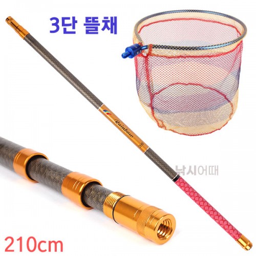 레인보우 빳빳한 3단뜰채대 (210cm) 낚시뜰채 12mm