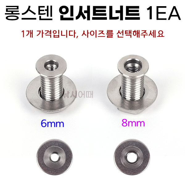 - HOME > 낚시장비/받침틀/좌대 > 좌대/크랭크/부품 > 롱스텐 인서트너트 6mm 8mm 낚시좌대 탭구멍 인서트볼트