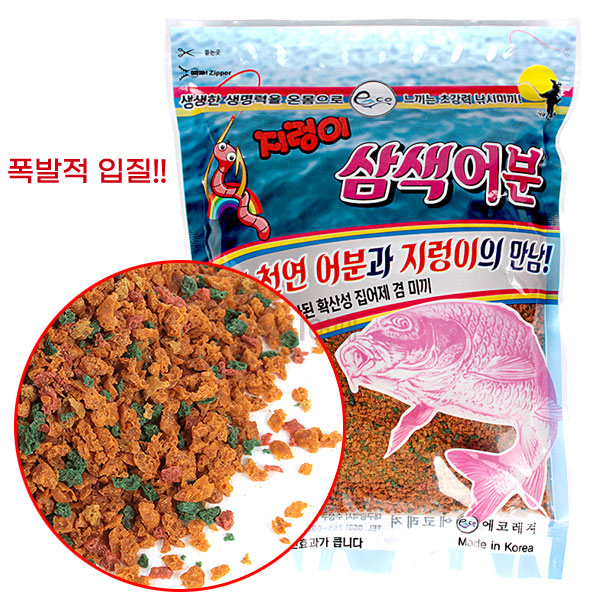 - HOME > 떡밥/글루텐/집어제 > 어분 > 에코레져 지렁이 삼색어분 / 식물성이 첨가된 집어제겸 미끼